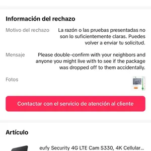 Nunca recibí mi producto, la foto del la entrega no se mira el lugar donde la dejo, además yo tengo cámaras afuera del lugar y nunca llegaron a entregarlo, no me aprobaron mi reembolso que más pruebas ocupan? Eso no es ser profesional de su parte