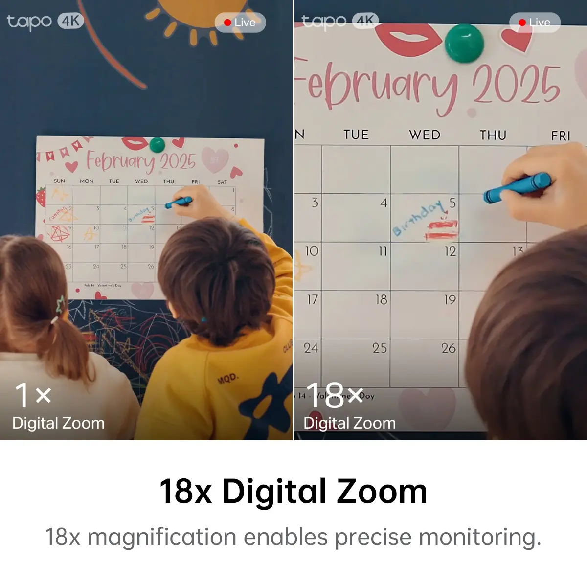 • 8MP 4K resolution with 18x digital zoom for crystal-clear details