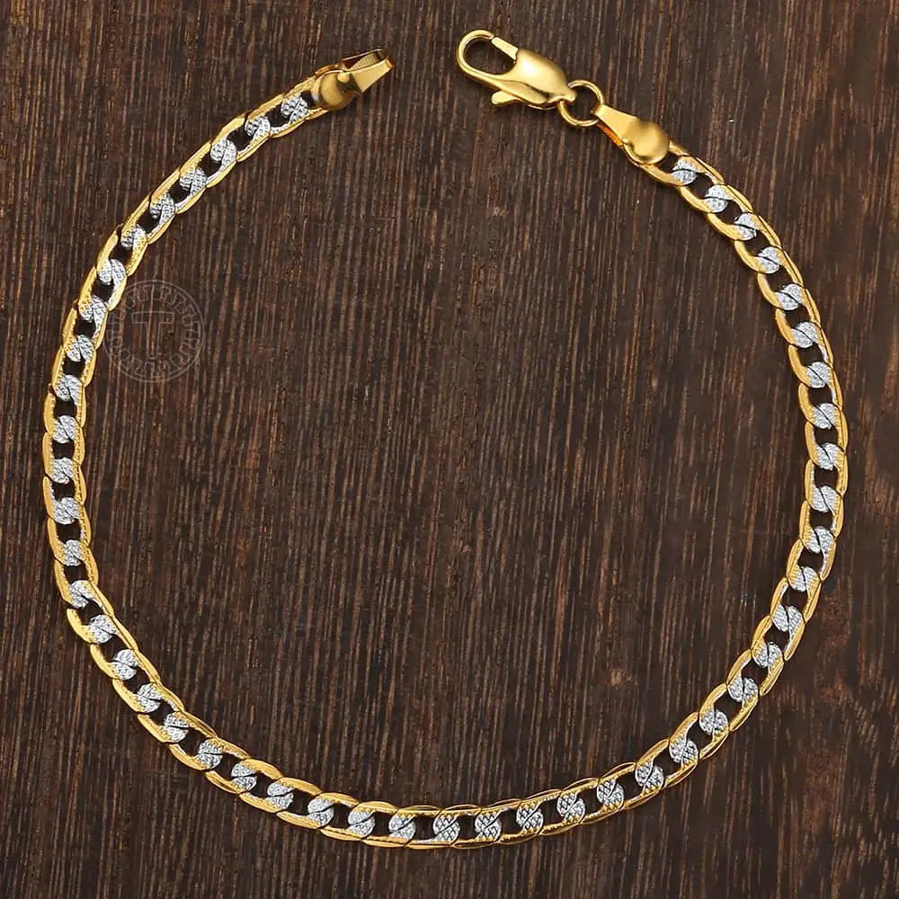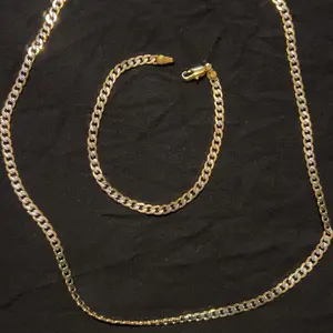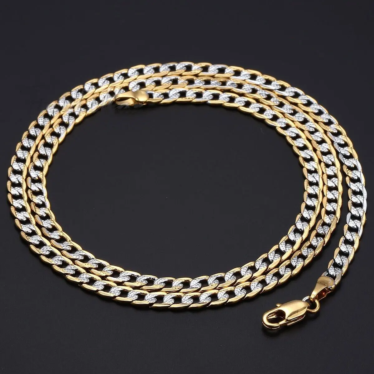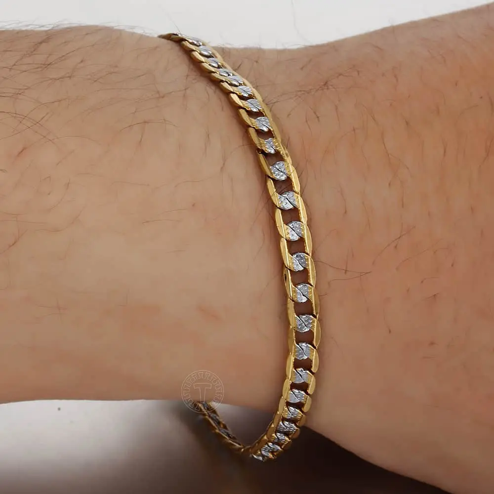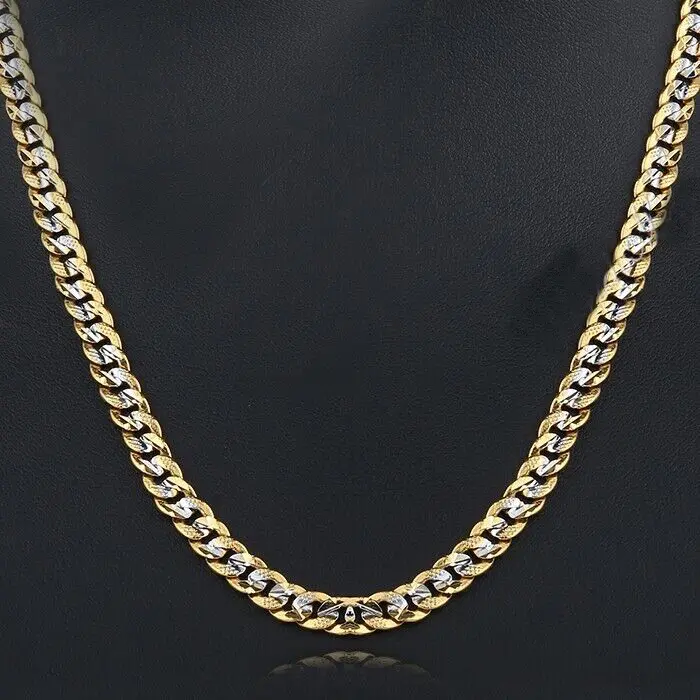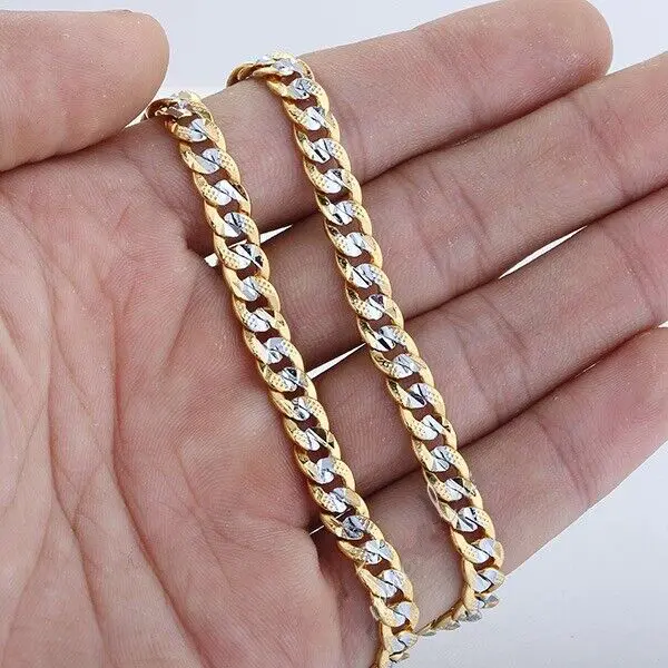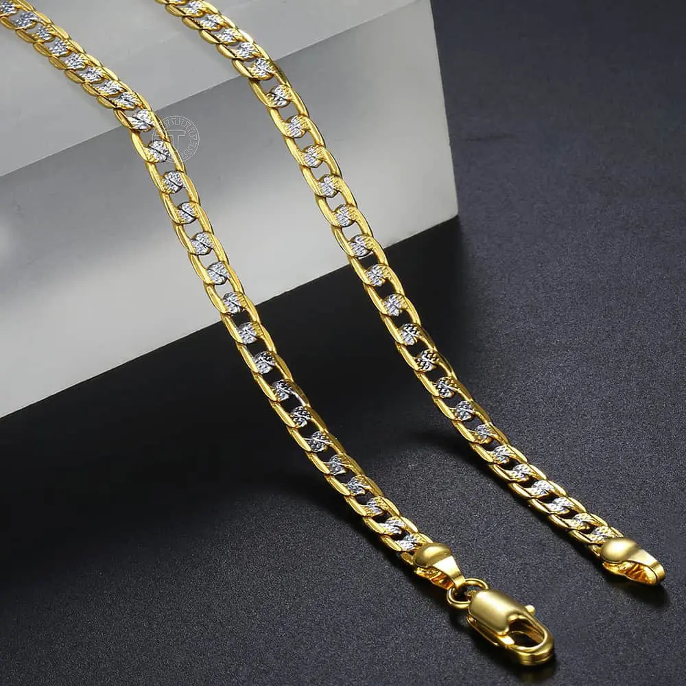This 4mm Silver+Gold Mixed Color Curb Cuban Link Chain Necklace bracelet jewelry set is the perfect fashion accessory to add a touch of style to any outfit. It is made of gold plated with alloy, ensuring durability and long-lasting wear.