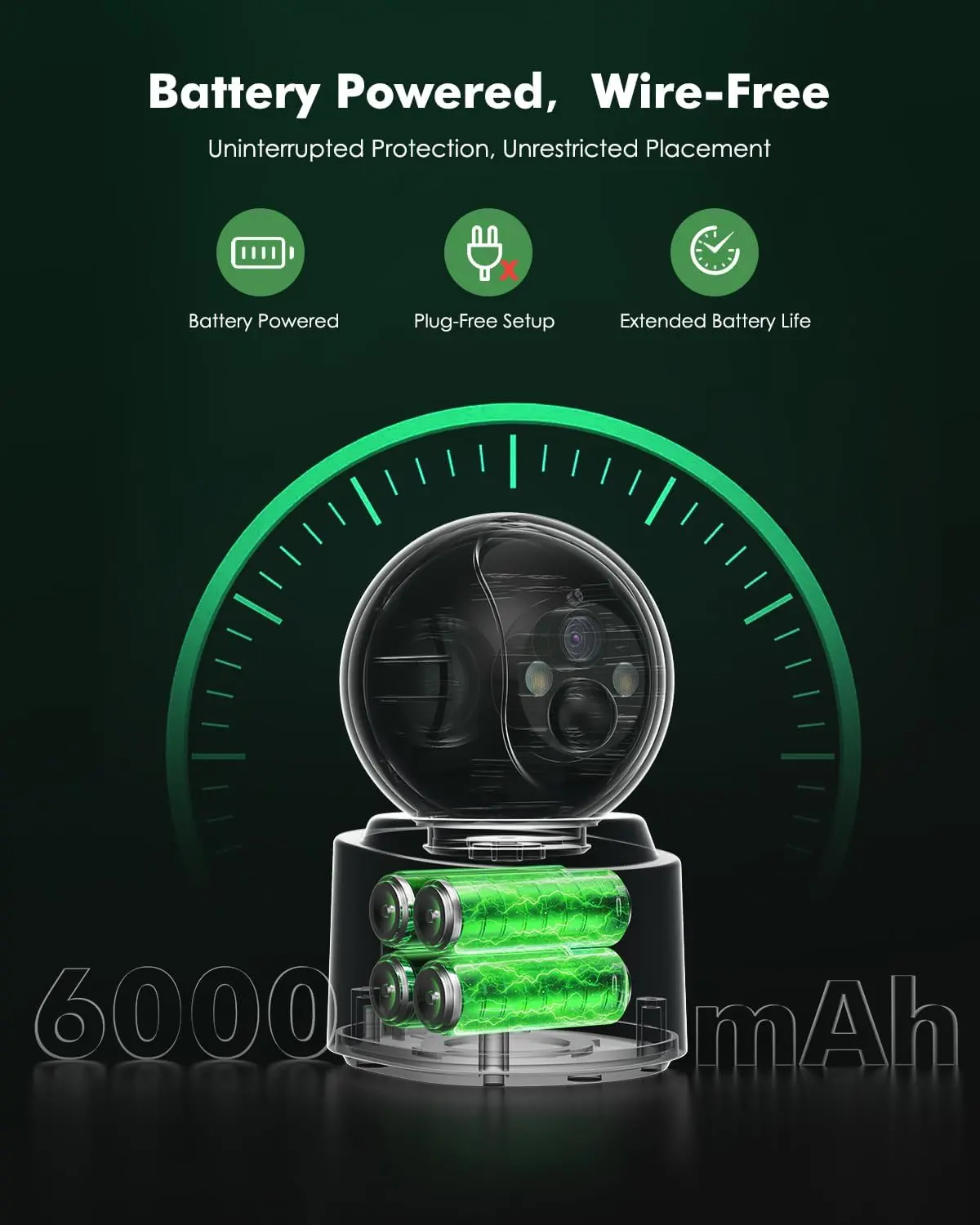 ·【360° View & Stable Dual-Band WiFi】The battery-powered camera features 355° pan, 60° tilt coverage eliminates blind spots, while 10x zoom reveals crucial details for peace of mind. A truly versatile solution for complete home security monitoring. 2.4G/5G Dual-band Wifi Connection ensures ultra-stable signals, delivering smooth, lag-free live streams.
