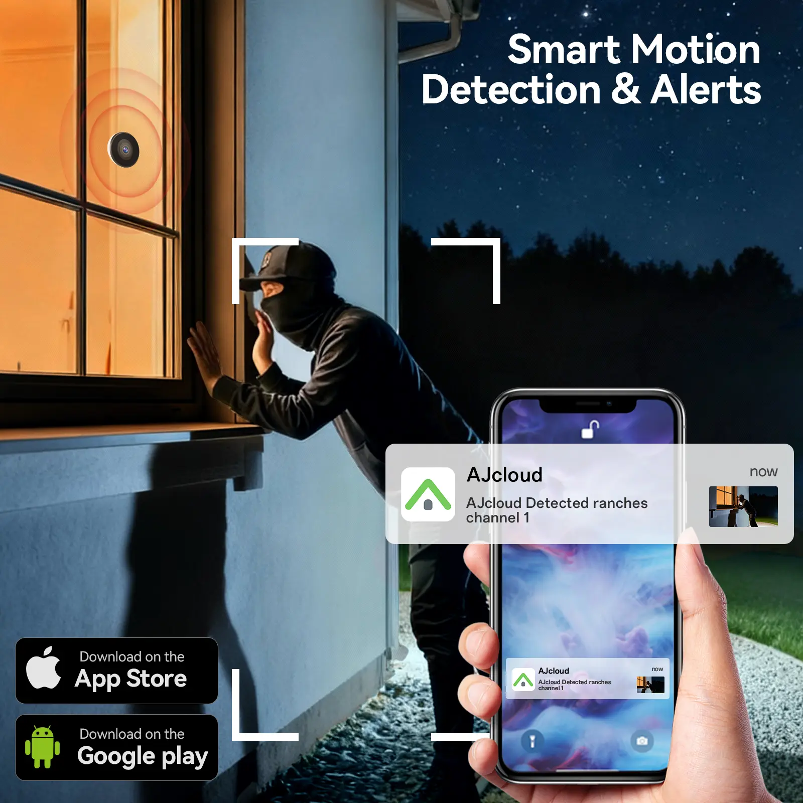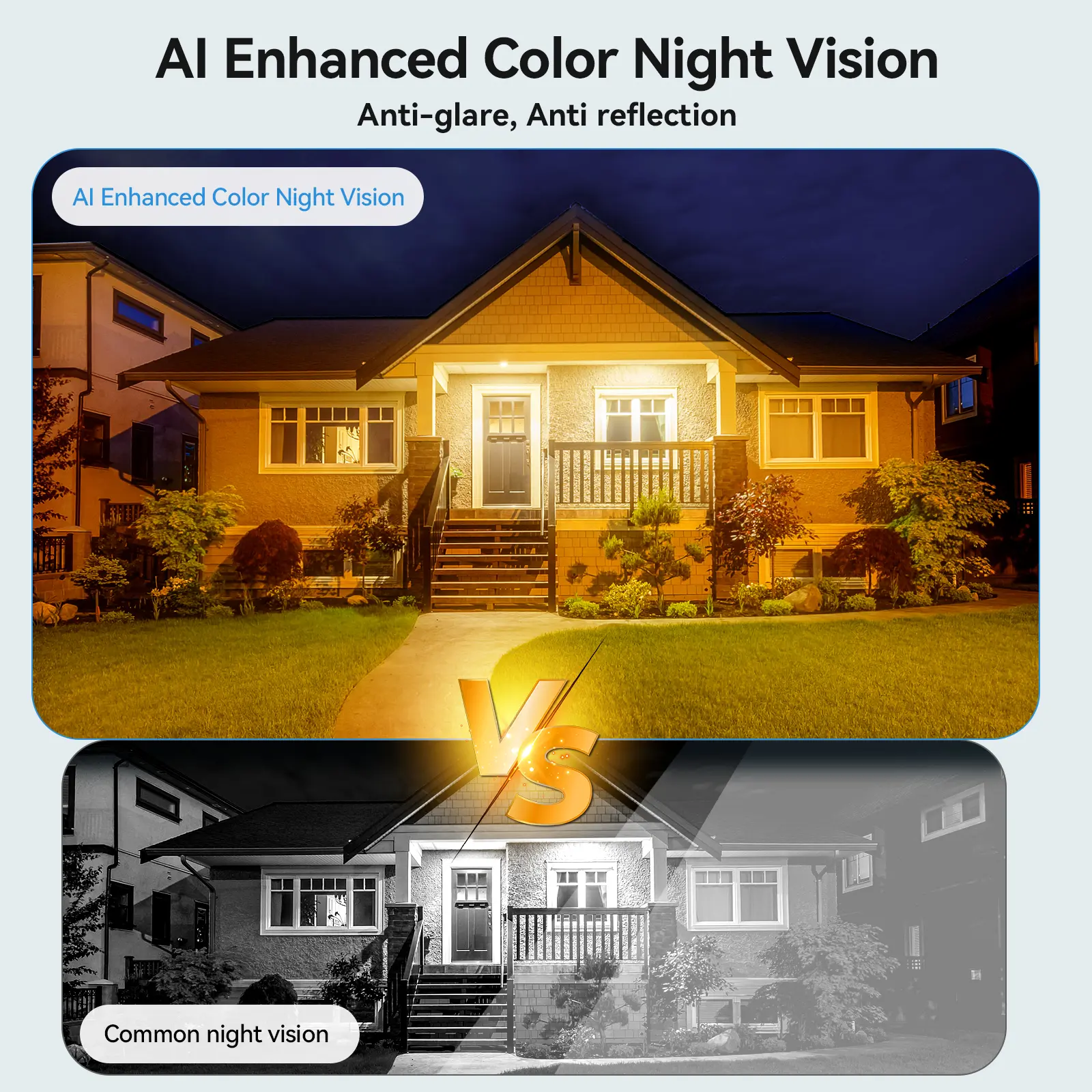 The 4MP Window Camera offers full-color night vision, ensuring clear visibility regardless of the time. It features a 4mm blacklight lens for enhanced night performance. The camera includes AI motion detection, providing accurate alerts. Two-way audio allows for two-way communication. Dual-band WiFi ensures stable connectivity. Perfect for monitoring your home or office.