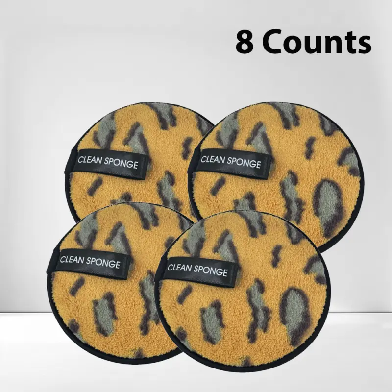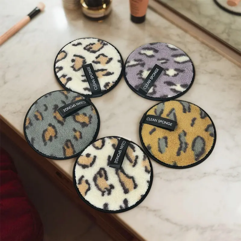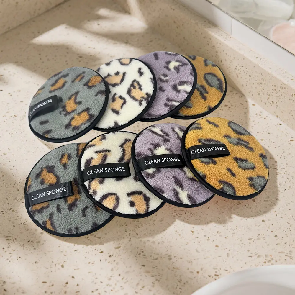 5. 4pcs Makeup Remover Face Puffs, Leopard print Cleansing Makeup Remover pad, Reusable Washable Facial Cleansing Pads Wet And Dry Dual Use