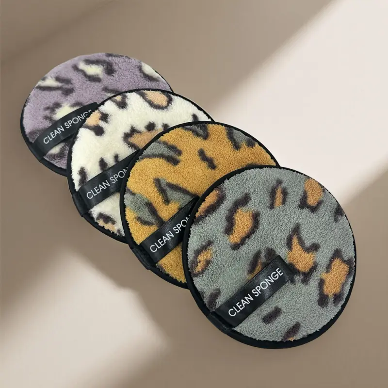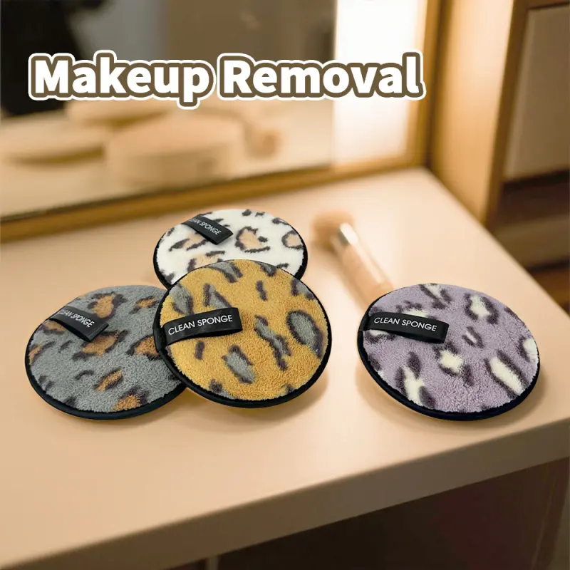 4pcs Makeup Remover Face Puffs, Leopard print Cleansing Makeup Remover pad, Reusable Washable Facial Cleansing Pads Wet And Dry Dual Use
