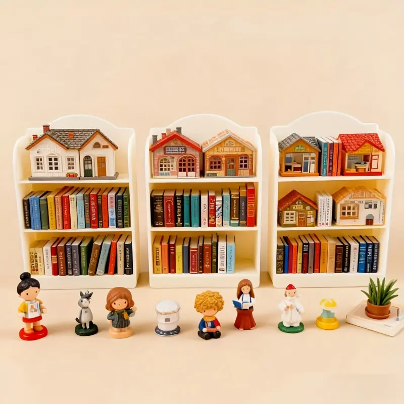 4pcs Mini Bookcase Set Multi Layer Office Desk Display Shelf Home Decor Small Furniture Organizer for Books Decorative Storage Solution