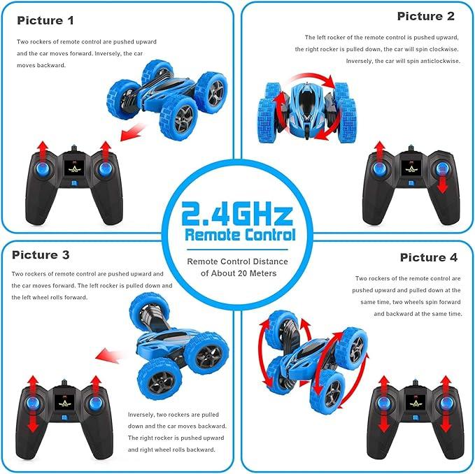 This 4WD Double-Sided RC Stunt Car is perfect for kids. It features a 2.4GHz remote control for easy operation. The car performs 360° spins and flips, adding excitement to playtime. It comes with all-terrain wheels, making it suitable for various surfaces. 🌟