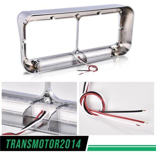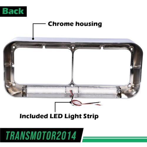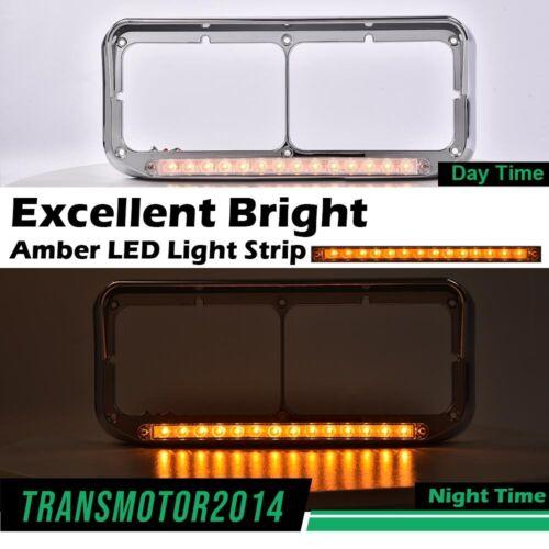 4x6 Chrome Headlight Headlamp Visor Bezels w/ Amber LED Bar - Clear Lens 1Pair