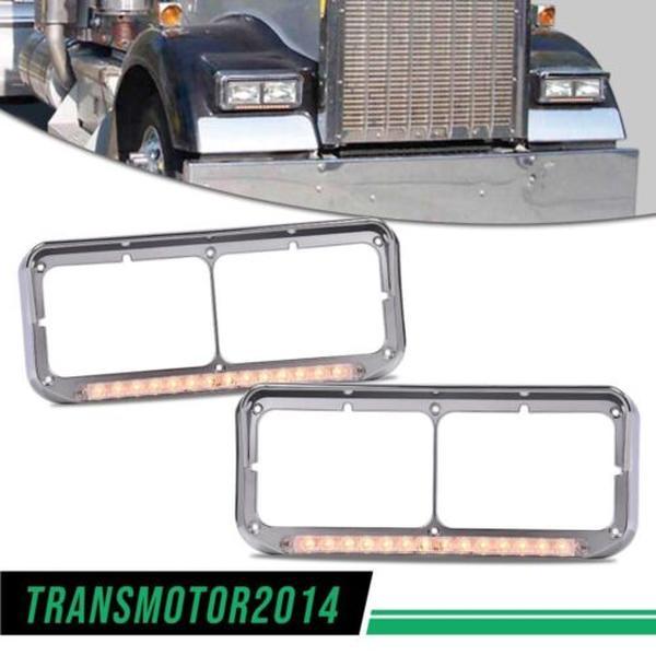 Application: Peterbilt, Kenworth, Freightliner and Western Star with dual rectangular 4x6 headlights trucks  Features: 100% Brand New Comes as a PAIR Direct fitment Fits both LH (Driver Side) & RH (Passenger Side) High quality injection molded plastic Built to strict quality control standards  Package including: 1 set Headlight Bezel