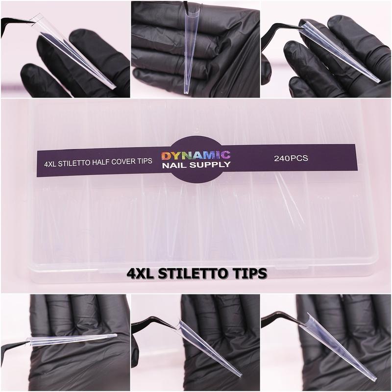 4. 4XL Super Long Stiletto Nail Tips - Half-Cover - Box of 240 pcs - 10 sizes - Clear