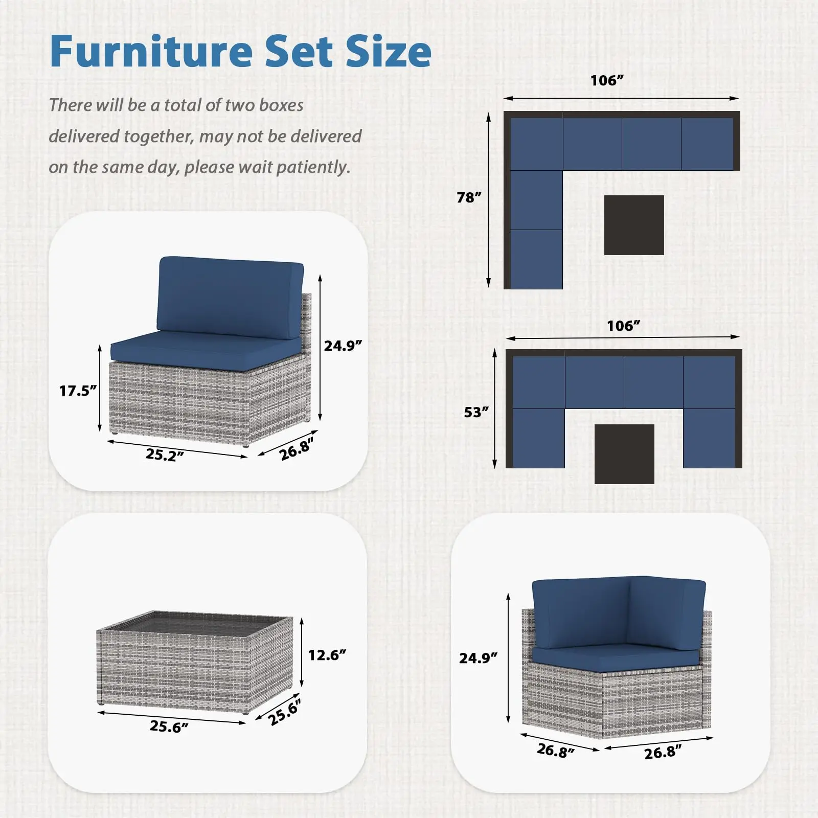 ·【About shipment】Your order is divided into two boxes shipped separately, so arrival times may vary. Once one box is delivered, the platform will automatically update to show delivery. Please assured the rest of the packages will be delivered as soon as possible.