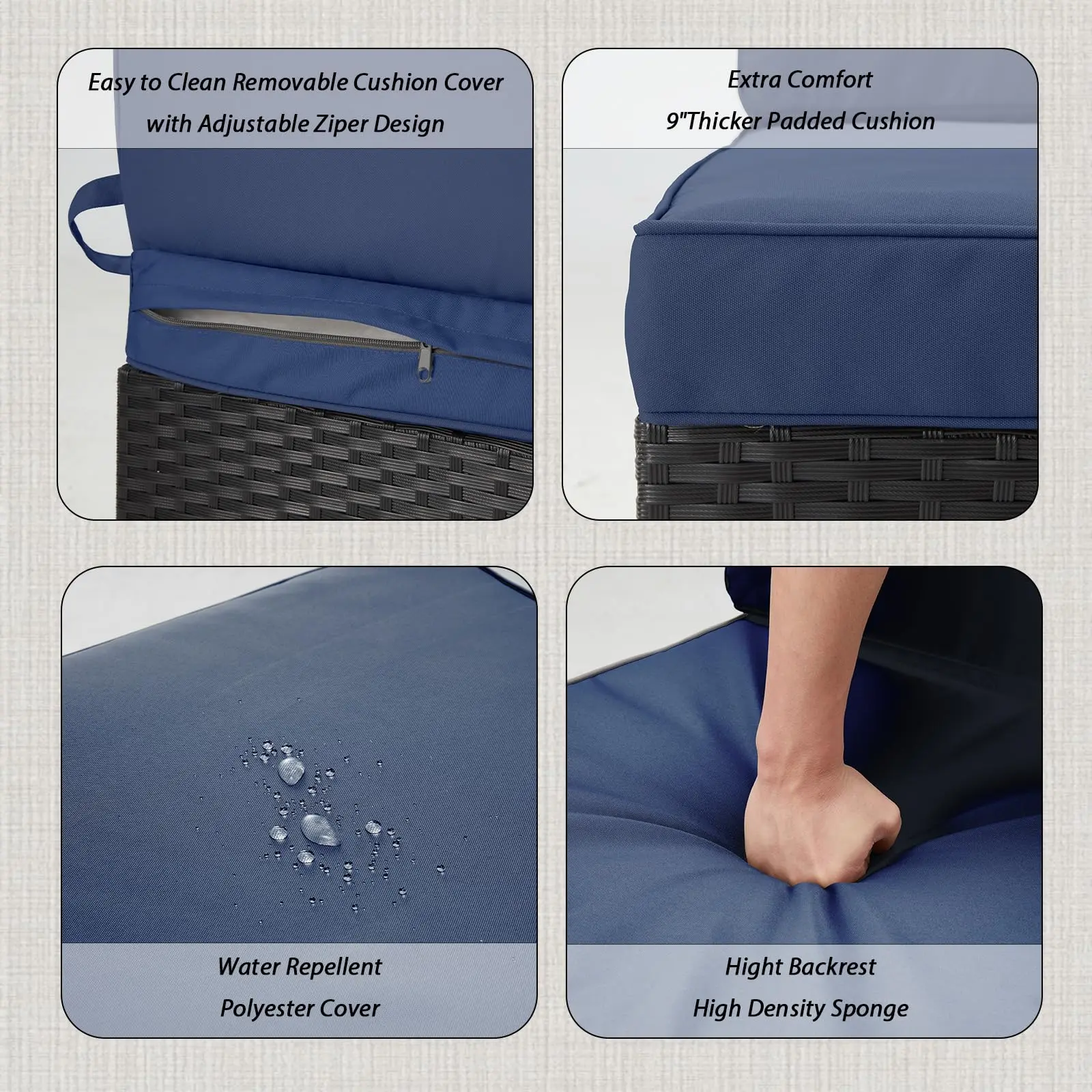 ·【All-Weather Design and Easy to Clean】Hand woven weather-resistant brown PE rattan provides durability and soft breathable polyester cushions with zipper are washable; It's easy to keep