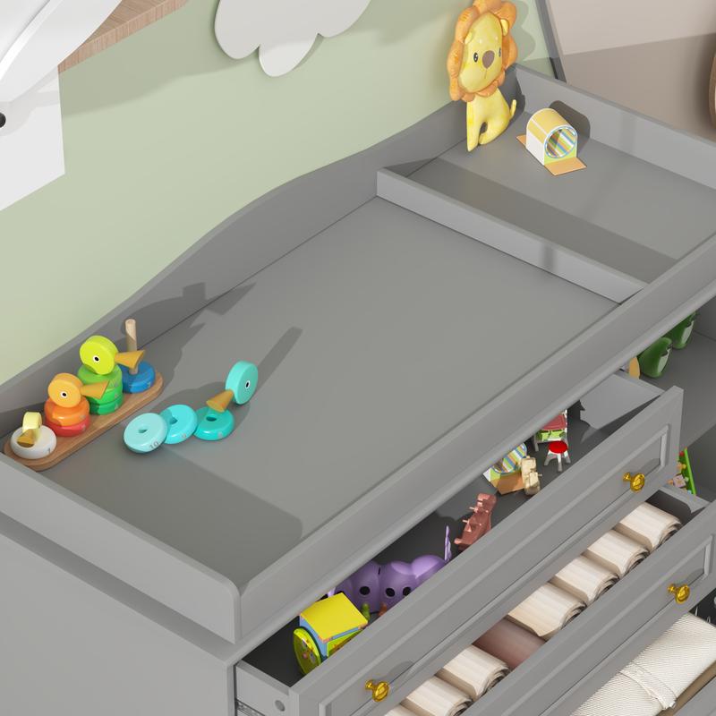 Works as a diaper changing station, massage spot, or clothes-changing area. When your little one gets bigger, remove the top to use as a 5-drawer kids’ dresser—lasts for years.