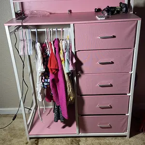 - Combines 5 spacious FABRIC drawers (holds 90-120 socks / 50-60 coats / 70-80 jeans)