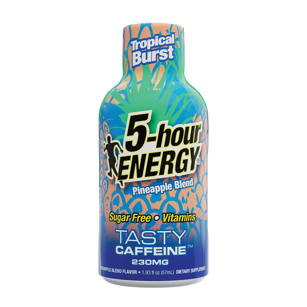 With a blend of nutrients, B vitamins and caffeine, Tropical Burst Extra Strength 5-hour ENERGY shots will quickly have you ready for the rest of your day — whether that’s beach volleyball or back-to-back conference calls. And because 5-hour ENERGY shots contain zero sugar, there’s no sugar crash later. Take your taste buds on a vacation. Try Tropical Burst Extra Strength 5-hour ENERGY today. Buy them in bulk to save.