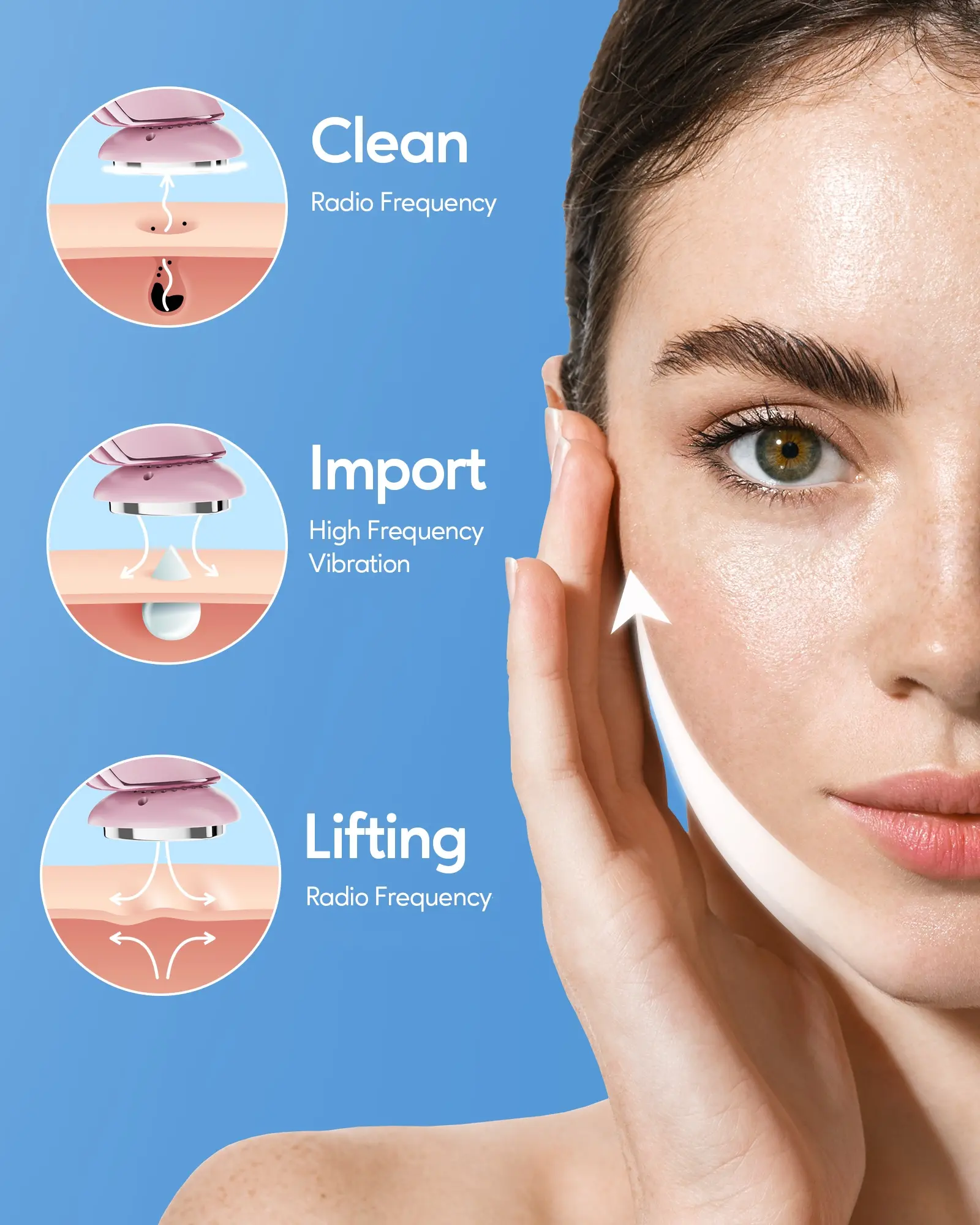 The beauty device is easy to use. Easy to clean.