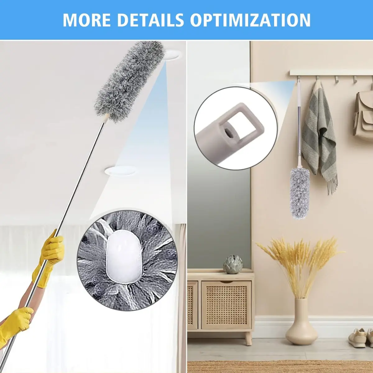 The duster heads are bendable and detachable, allowing you to reach tight spaces and awkward angles. Made with microfiber for strong dust absorption, they are also washable and reusable for long-term use.
