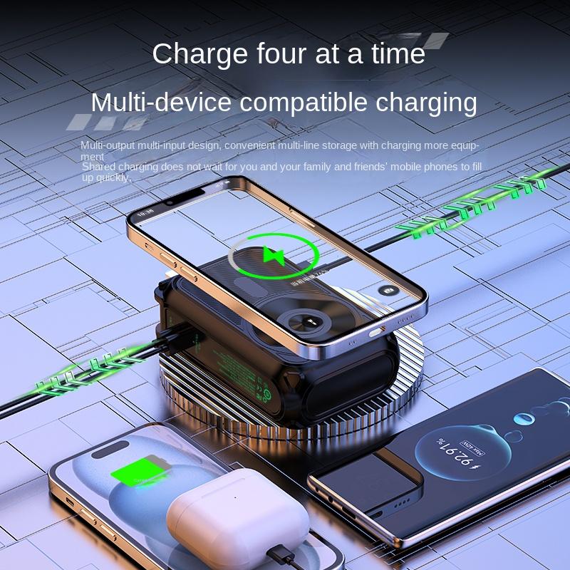 Its 5-in-1 design integrates multiple functions into one compact device, eliminating the need to carry several chargers. Experience the convenience of fast, versatile charging in a single, portable unit. Beyond its impressive performance, this power bank also includes intelligent safety features to protect your devices from overcharging and overheating, ensuring a safe and reliable charging experience. Whether for everyday use or emergency situations, this power bank is your ultimate charging companion.