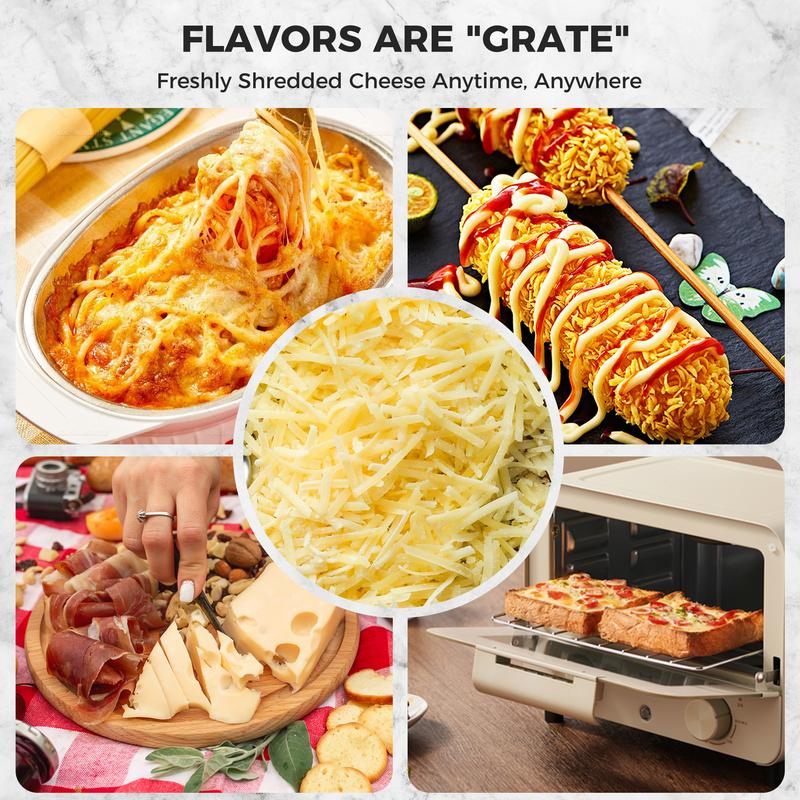 Busy weeknights? This 5-blade rotary grater gets your prep done fast and easy! Shred cheese, carrots, cucumbers in seconds. The strong suction base holds tight so you can shred with one hand—no slips, no stress. Save time, spend more moments with your family, and enjoy cooking made simple.