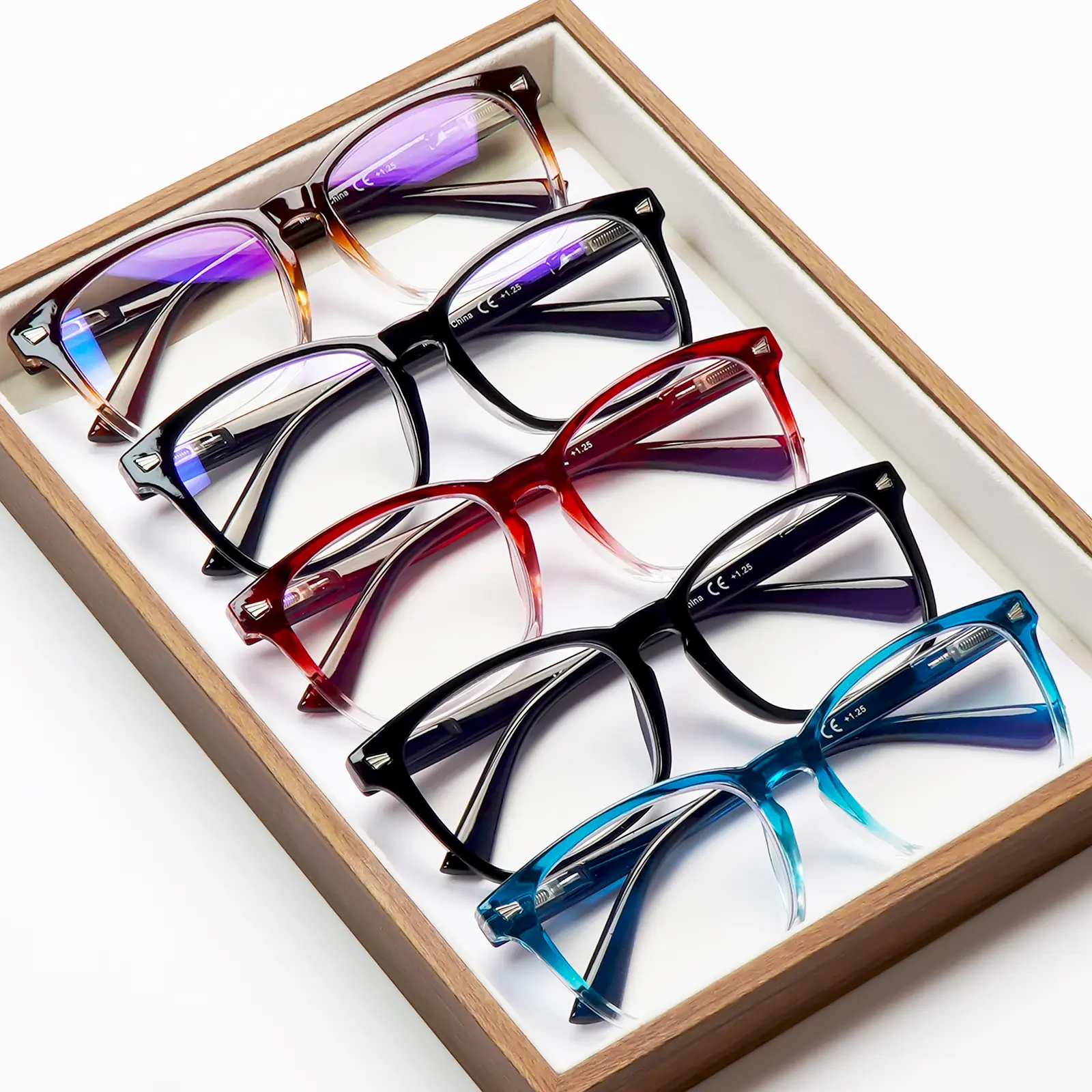 WHAT YOU WILL RECEIVE: A set of 5 style reading glasses, 5 premium PU leather protective cases, and 5 black soft cleaning cloths