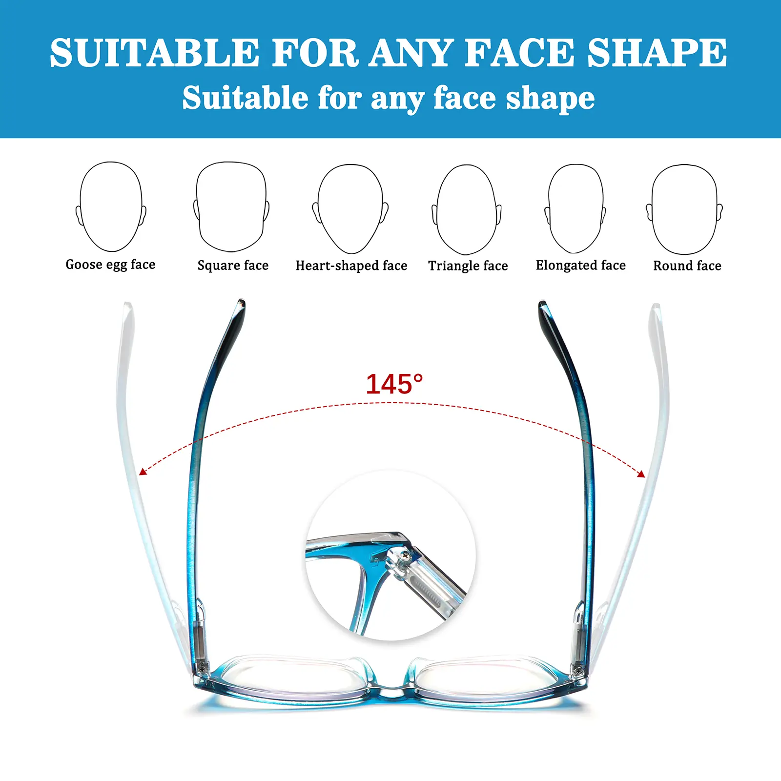COMFORTABLE & FEATHER-LIGHT DESIGN: Equipped with flexible spring hinges for a secure and adaptive fit that suits a wide range of face shapes. Soft integrated nose pads alleviate pressure on the bridge for all-day comfort and adjustable ease.