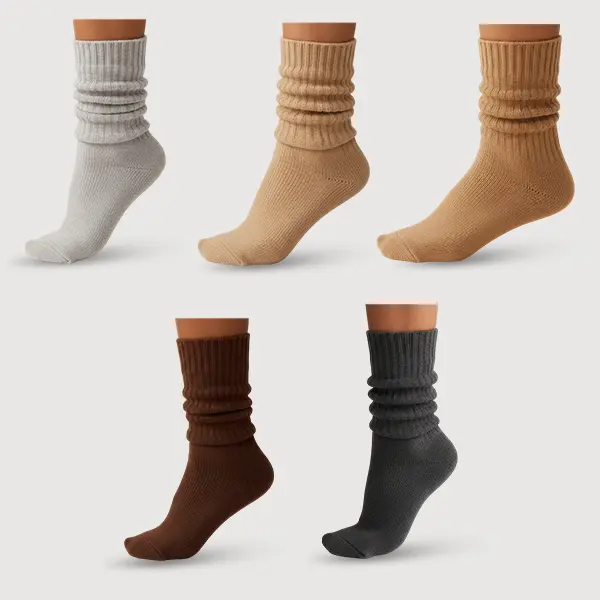 5 Pack Scrunchy Slouchy Socks Bundle - Tan/Mocha/Brown/Heather Grey/Dark Grey