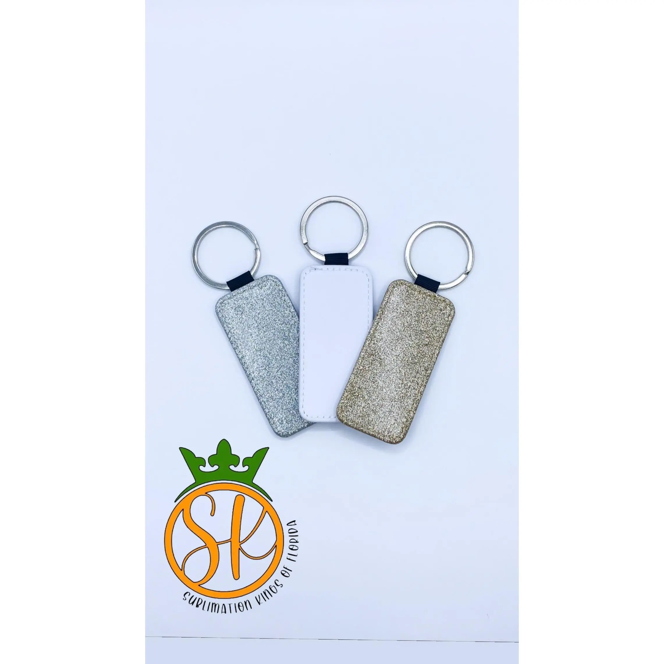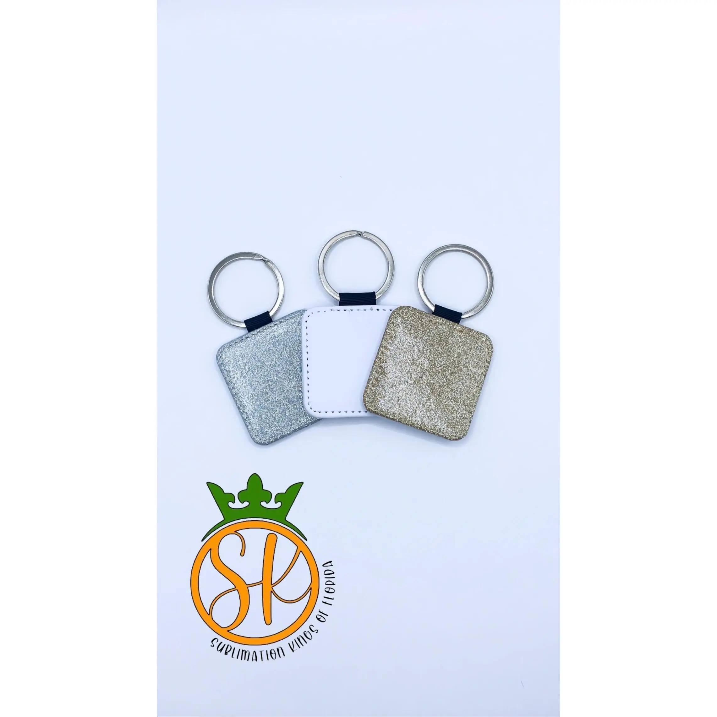 Sublimation Ready keychains come in several different options and sizes. Square, round, rectangular. Comes in plain white, gold or silver glitter. The glitter keychains are white on one side for sublimation and glitter on the backside.