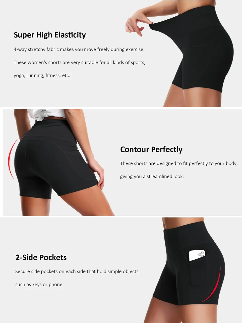 [Keep Perfect Shape] - High-waisted style with tummy control design. Wide waistband contours body curves and streamlines shape help to promote yoga shorts both compression and support.