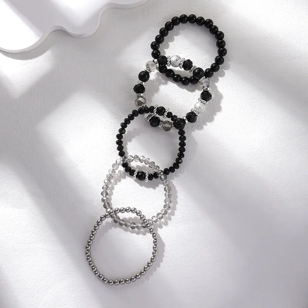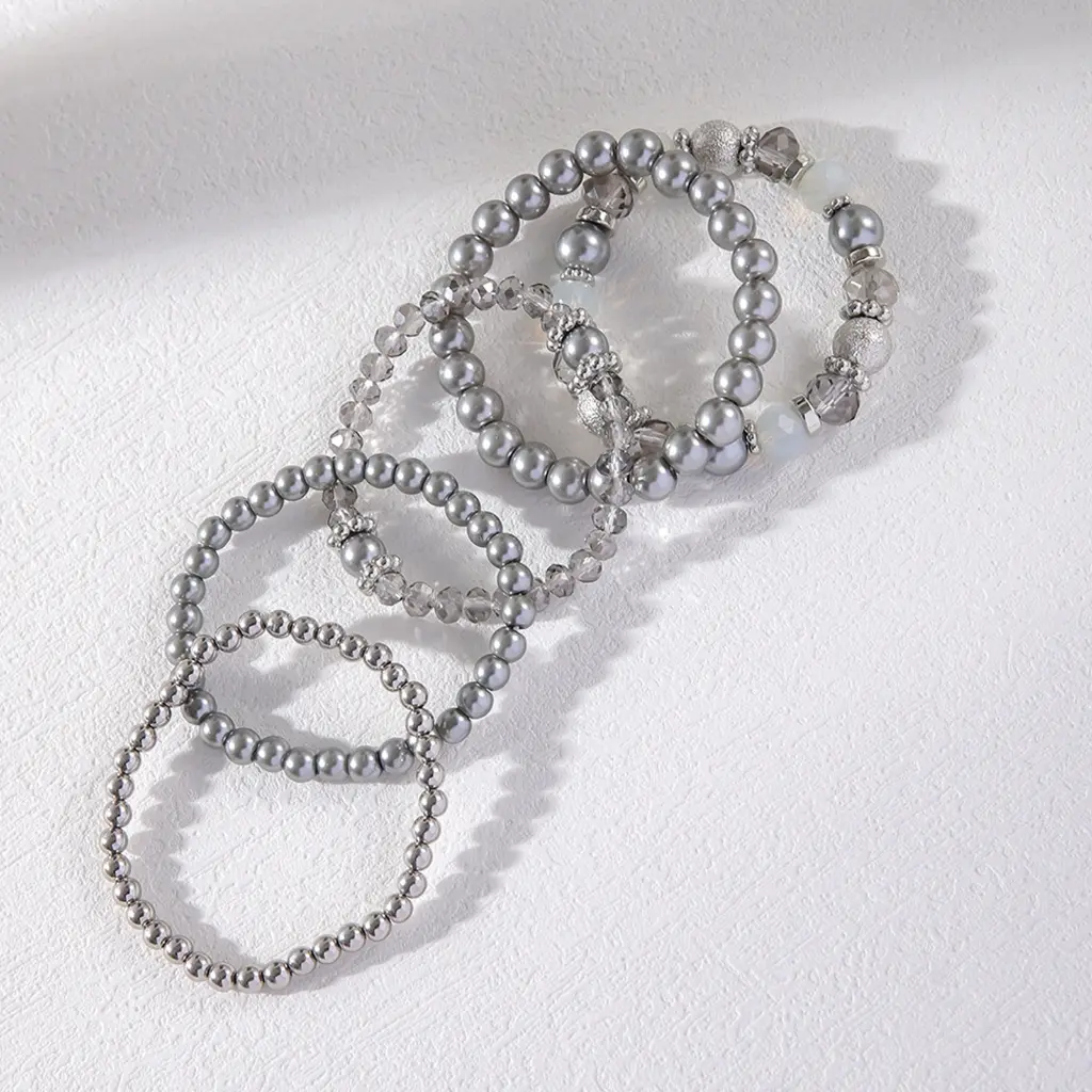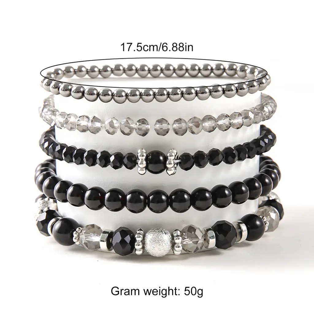 5Pcs Crystal Beaded Stretch Bracelet Set