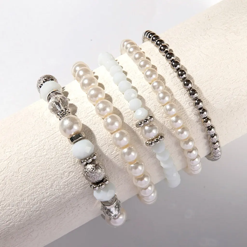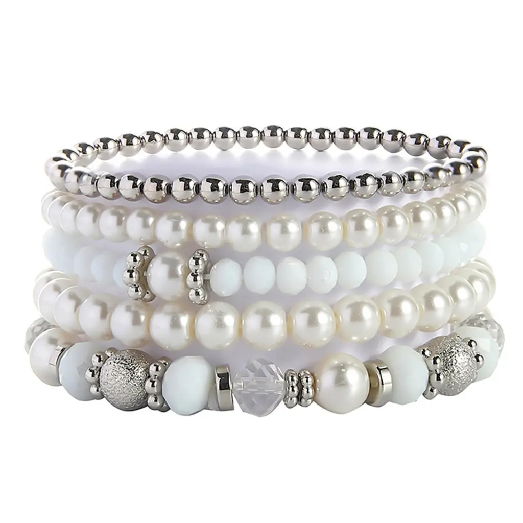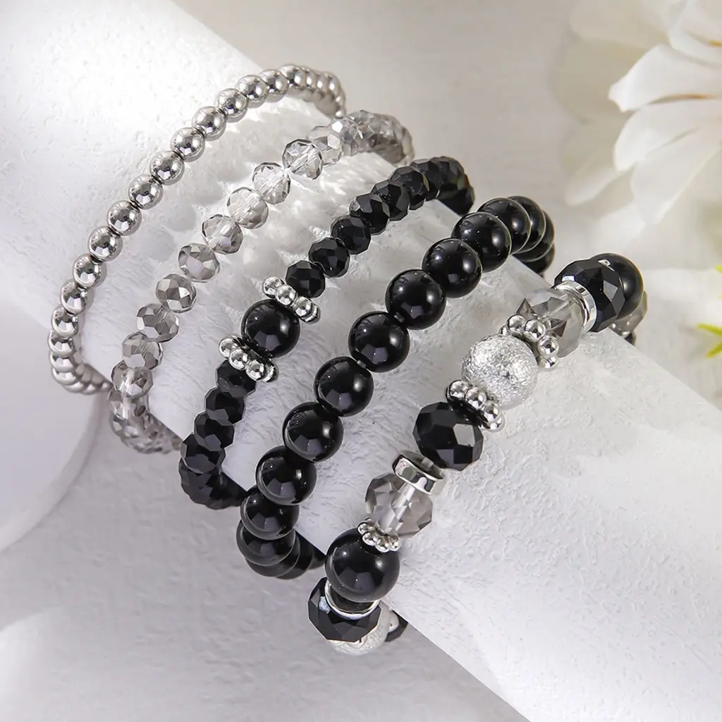 5Pcs Crystal Beaded Stretch Bracelet Set
