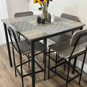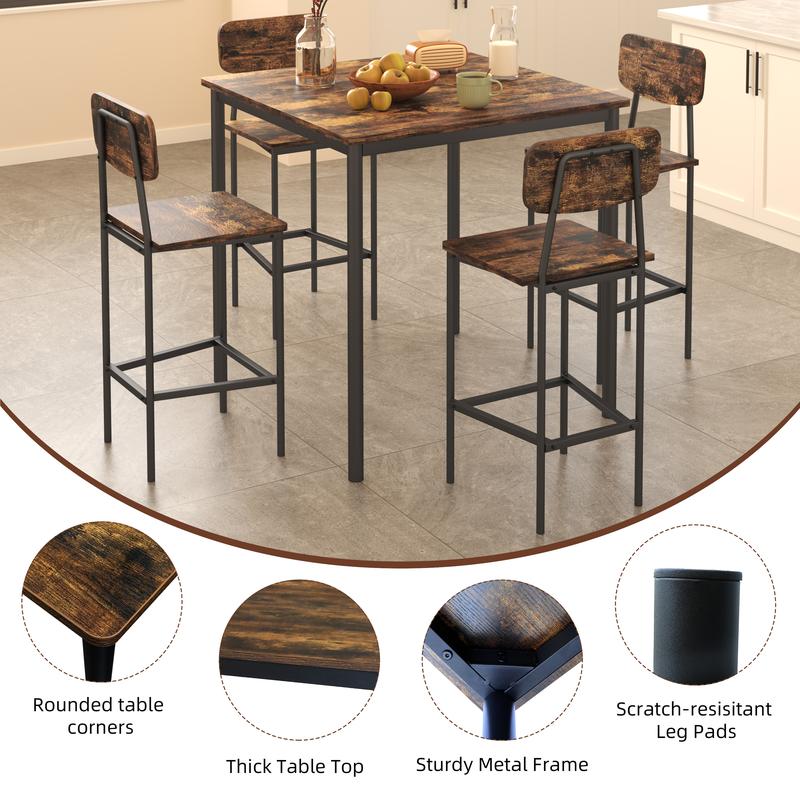 Transform your dining space with our stylish 5-piece dining set, combining rustic charm with modern functionality. This set includes one square table and four matching chairs, designed to create a cozy and inviting atmosphere for family meals, gatherings with friends, or casual dining. Whether you have a compact apartment, a spacious kitchen, or a dining area, this set is a perfect fit, adding a touch of industrial chic to your home.