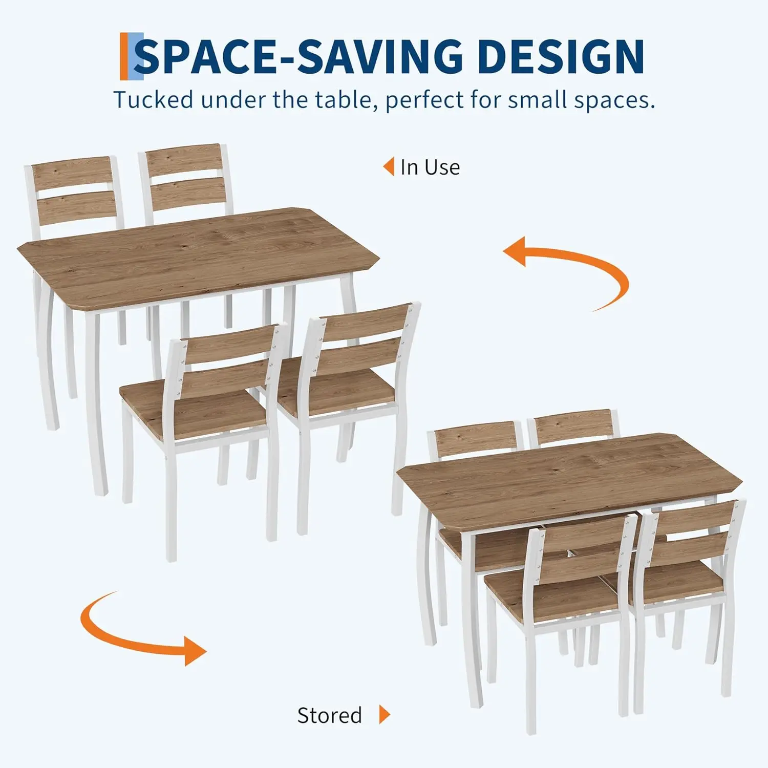 Space-Saving & Versatile: Chairs tuck neatly under the wooden dinner table when not in use, maximizing floor space for smaller rooms. The compact dinette set doubles as a computer desk, work table, or bar table, adapting to your lifestyle