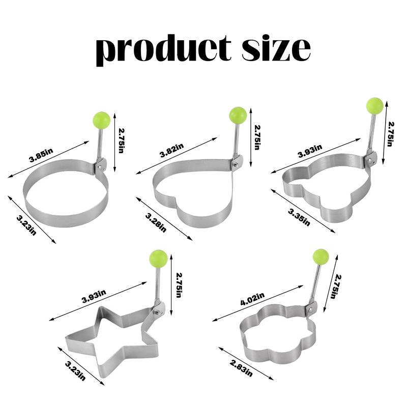 More molds, More Choice - Each Order Comes with 5 Egg Ring Shapes This makes them great for children who are very picky with the shape of their foods. Especially when you have several children, this 5 counts set is a must have egg kitchen gadget