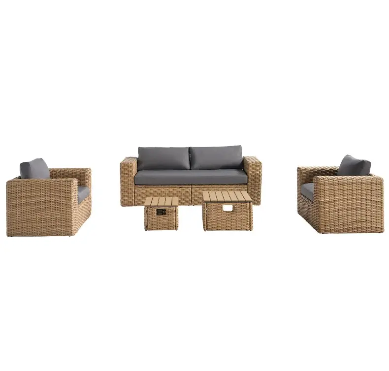 Sturdy Construction for Long-Lasting Use: Built with a strong frame and thick, durable wicker, this 5-piece sectional set is made to withstand the elements. It’s designed to support heavy use, ensuring your outdoor seating stays reliable and sturdy for years to come.