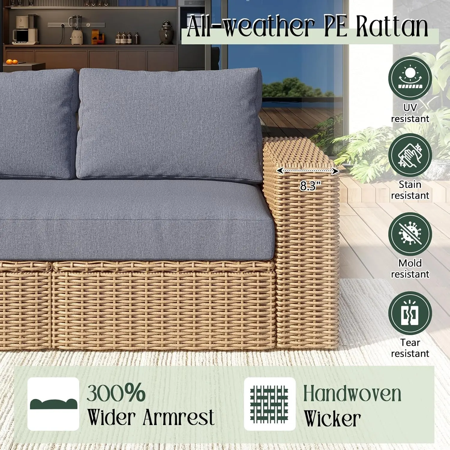 Comfortable Seating with Thick Cushions: Enjoy hours of relaxation with 5.9 inch thick, high-density cushions that provide ultimate comfort. The ergonomic design of the outdoor furniture couch set ensures you can unwind in style, whether in your garden, backyard, or poolside.