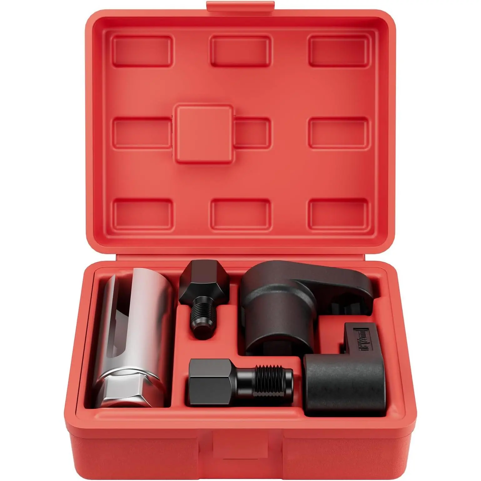 【5PCS Sensor Removers】:5pcs sockets and wrenches included in the red case.1pc 3/8” Dr. extra deep broach socket (3-1/8” long), 1 count 3/8” Dr. low-profile crowfoot socket wrench (1-1/4” long), 1 count 1/2” Dr. offset crowfoot socket wrench (1-15/16” long), 1 count M18 x 1.5mm and 1 count M12 x 1.25mm thread chasers with 3/8” drive for cleaning and repairing damaged threads.