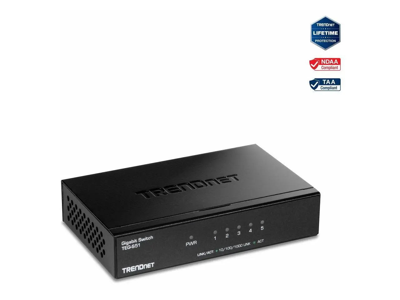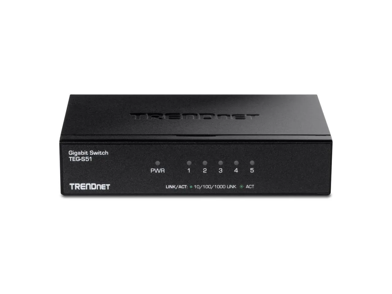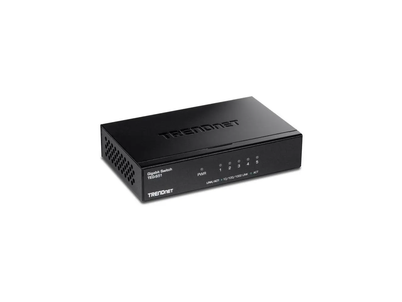 TRENDnet 5-Port Gigabit Desktop Switch, TEG-S51, 5 x Gigabit RJ-45 Ports, 10Gbps Switching Capacity, Fanless Design, Metal Enclosure, Lifetime Protection, Black
