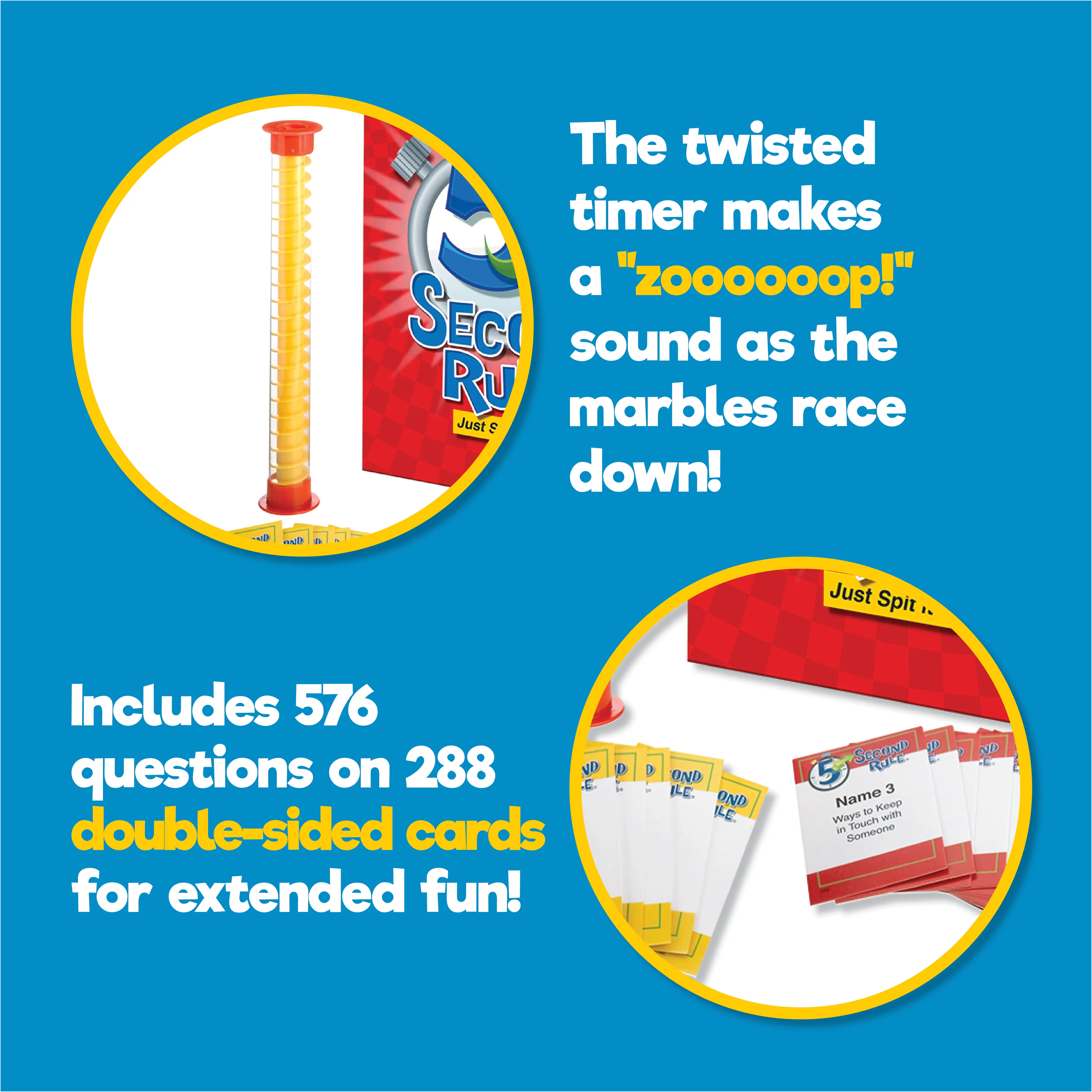 The game features a unique twisted timer, adding to the time pressure and the fun! Just Spit it Out! Perfect for parties, game nights, and birthdays. Ages 10+. 🎉