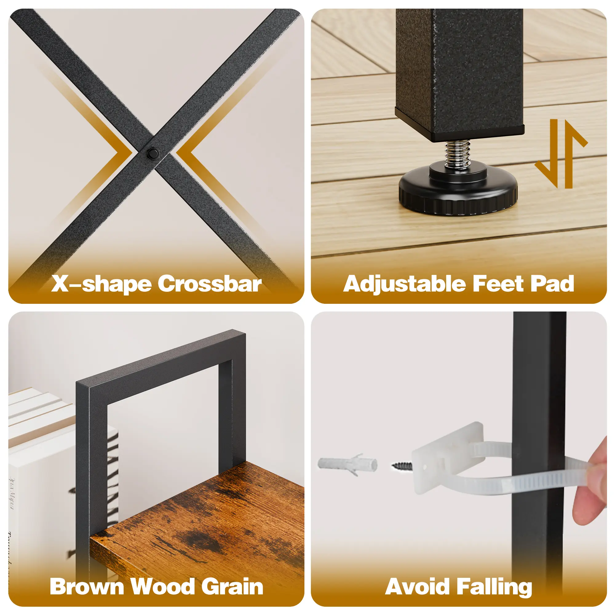 The bookshelf looks exactly as pictured and is pretty sturdy even without using the wall anchors. It was easy to assemble and in great condition after shipping. I love it!