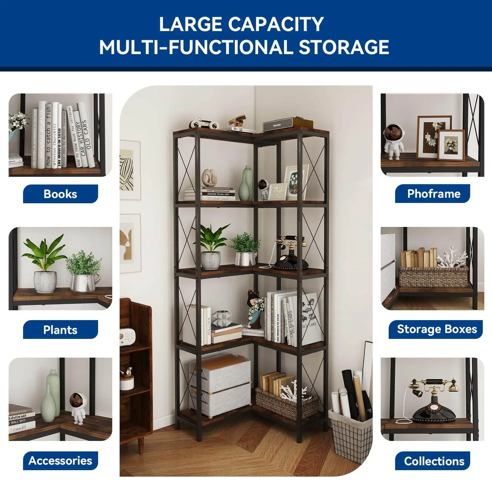 ·EASY TO ASSEMBLE: This corner bookshelf has a simple structure with detailed instructions inside the package. You can follow the installation video, follow the steps to install, the whole installation process is extremely simple, about 5-10 m