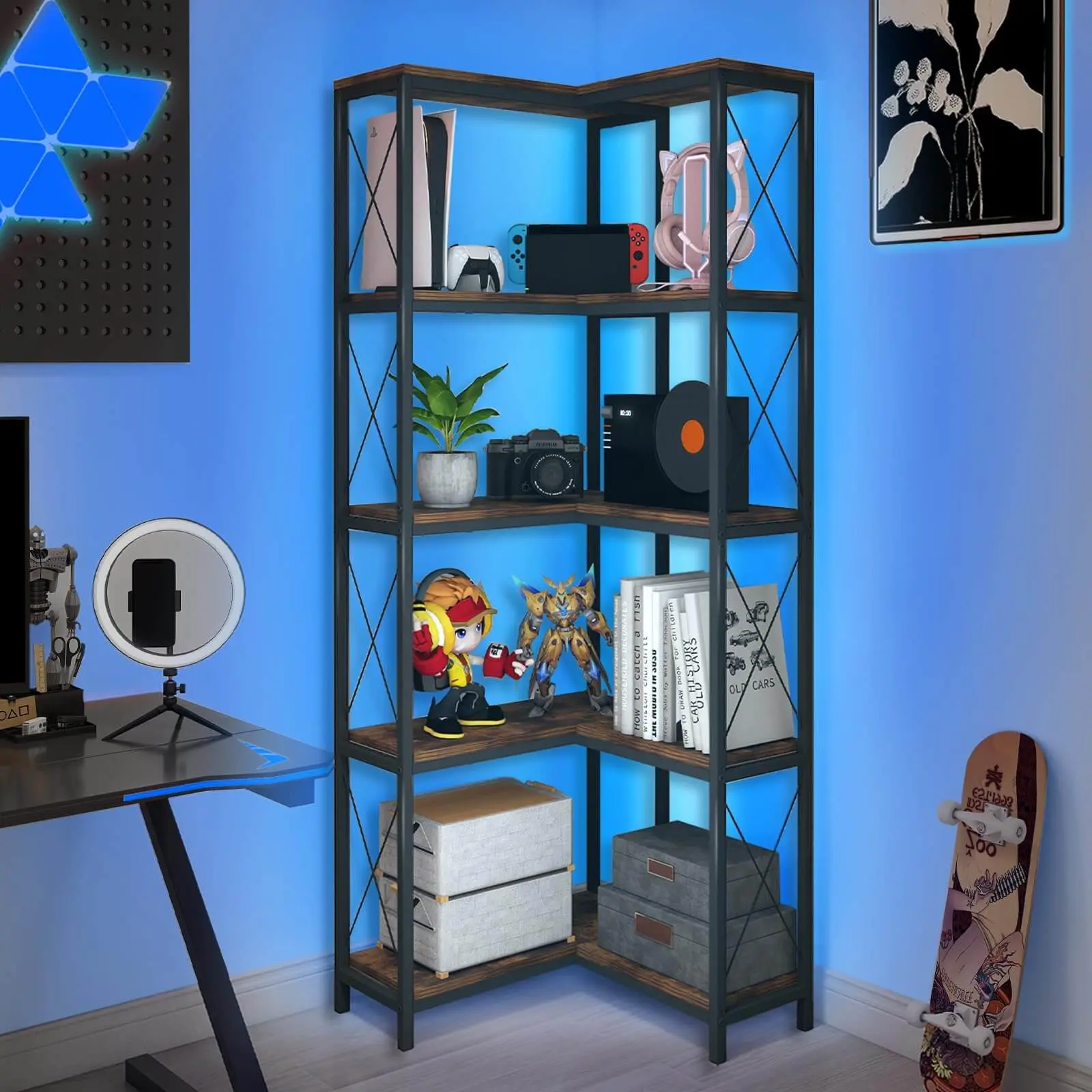 ·UNIQUE L-SHAPE DESIGN: This bookshelf boasts an ingenious 90° right-angle artistic design. It doesn't just save space; it brilliantly repurposes neglected corner areas into highly functional storage solutions that seamlessly integrate into every nook. Perfectly suited for any corner of your living room, bedroom, home office, kitchen, hallway, balcony, and even bathroom.