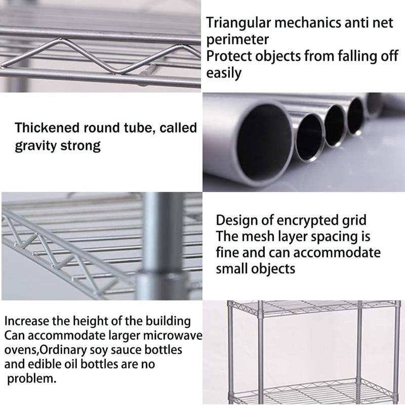 This storage rack is crafted from high-quality metal, ensuring durability. Each layer features a mesh structure, while a triangular mechanical edge prevents items from slipping. This design offers enhanced load-bearing capacity, making storage stable and secure. Ideal for garage, kitchen, or home supplies, it keeps your space organized.