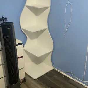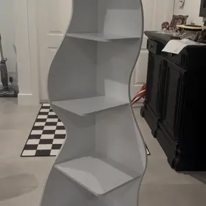 【Sleek and Vintage 5-Tiered Shelving Unit】: This stylish and functional shelving unit features a unique sea grass-inspired design and an all-white finish, adding a touch of elegance to any corner of your home or office.