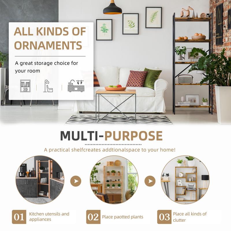 ·5-level bookshelves: 5-level wooden open bookshelves provide plenty of space to display or store your daily necessities. Books, plants, decorations, picture frames, DVDS, toys, or any other kind of thing will be in order. 1 piece per set.
