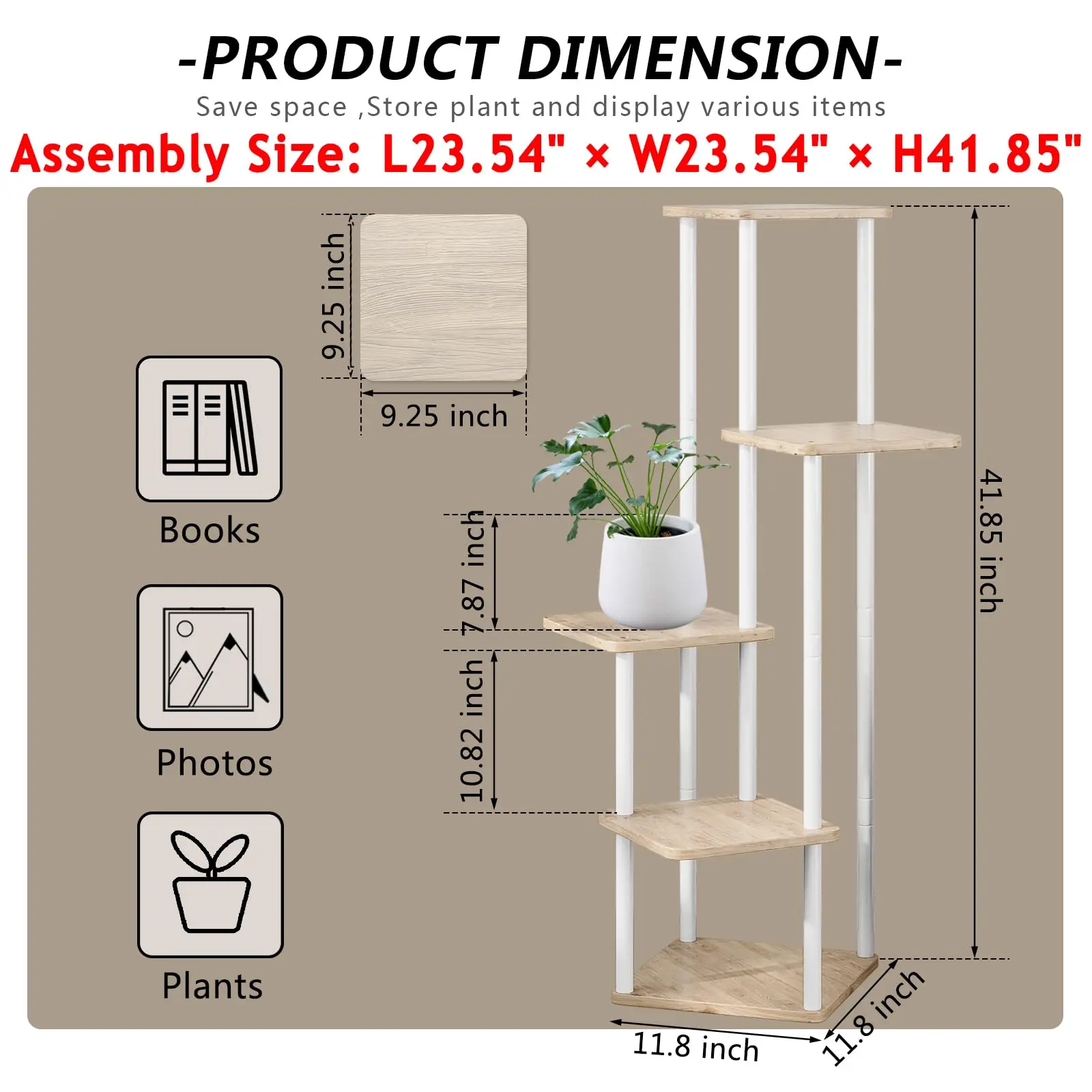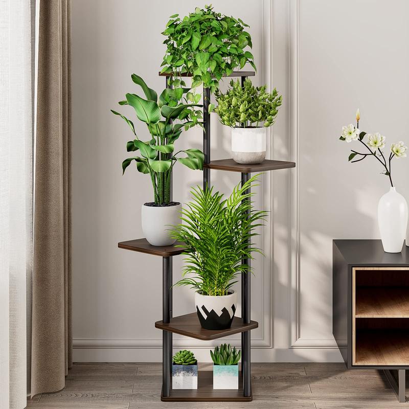 ·【5 Tier Tall Plant Shelf】The Indoor Plant Stand includes 5 shelves, 23.54(L) x 23.54(W) x 41.85(H) inches,perfect for flower pots of various sizes and shapes, each plant can soak up sufficient sunlight to thrive. In addition to showcasing your lovely plant, you can also use it for your pictures or memorable knickknacks.