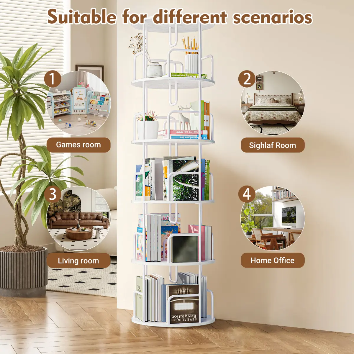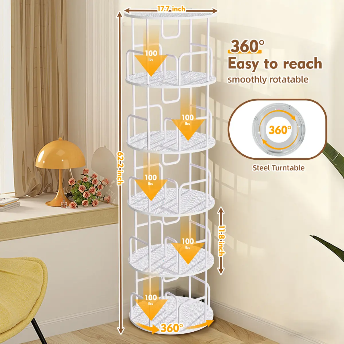 ·[5 Tier Rotating Bookshelves, Capable Of Storing Many Books] 5 Tier Rotating Bookshelves (17.7 Inches Long X 17.7 Inches Wide X 62.2 Inches High).The Rotating Design Saves You Space!Multi-Layer Design Allows You To Adjust The Number Of Layers According To Your Needs.The Stylish And Space-Saving Design Keeps Your Home Tidy, With Various Colors To Choose From.