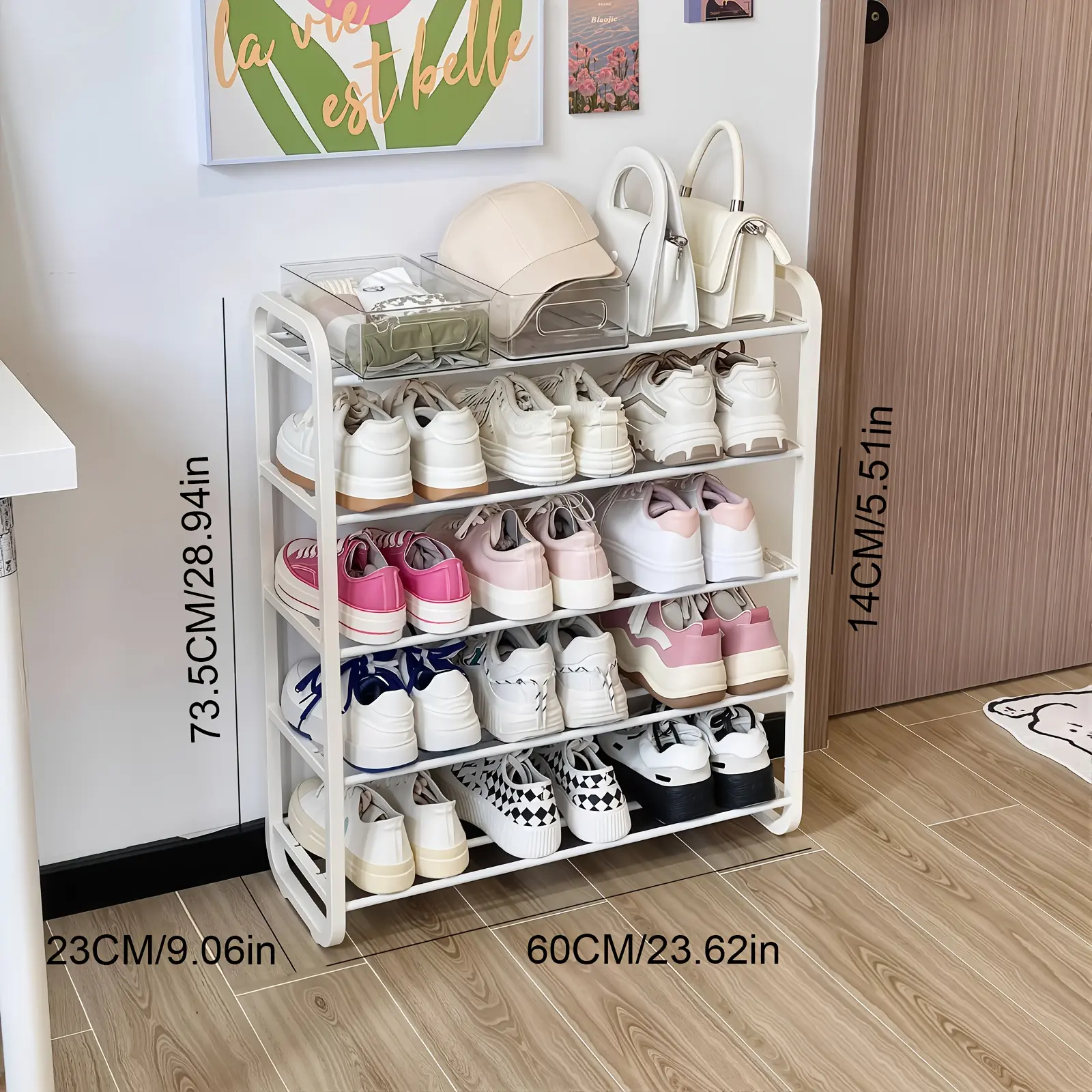 ·5 Tiers: Provides ample storage for multiple pairs of shoes.