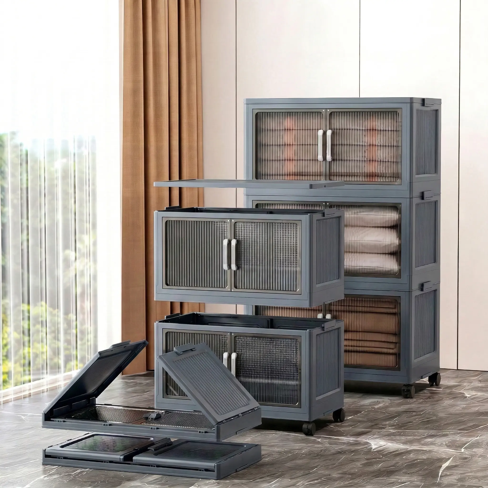 ·Stackable & Removable Design: Foldable storage bins and a stackable storage box. Each level has matching grooves and clasps on the top sides to lock the storage bins securely, and the foldable design maximizes space in your home when not in use. There are rotating wheels on the bottom for easy movement