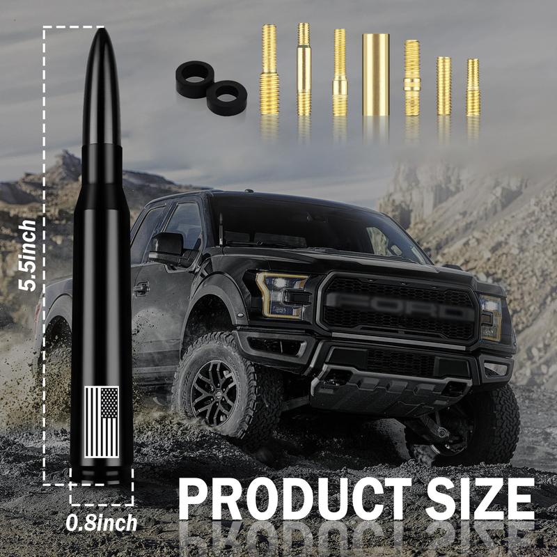 Enhance your vehicle's functionality with the American Flag 50 Cal Bullet Antenna, designed specifically for the Ford F150, F250, F350, Super Duty, Ford Raptor, and Bronco Truck models. This essential accessory is compatible with GM Chevy Silverado 1500, 2500, and 3500 models, ensuring a perfect fit for your vehicle.The Size:0.8 x 0.8 x 5.5 inches