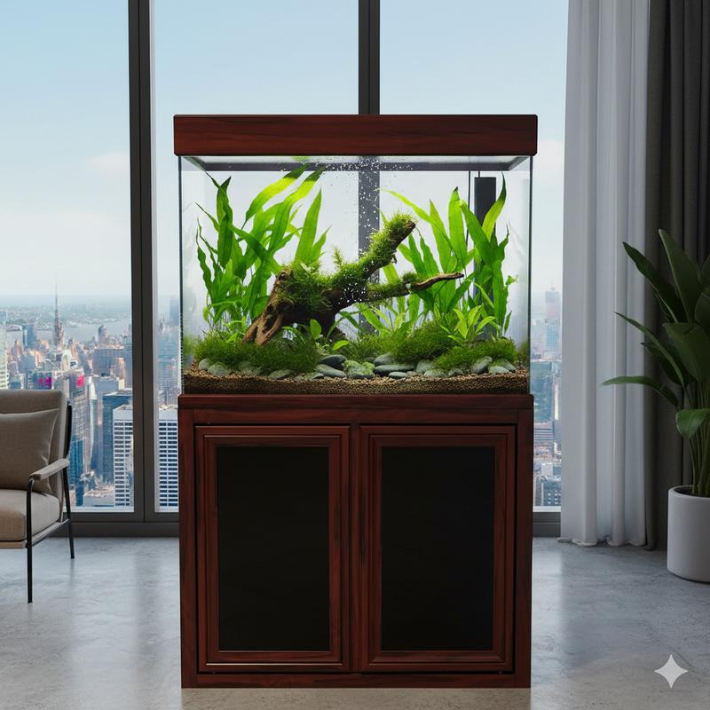 This setup is perfect for vibrant coral, fish, or plant aquascapes. It features a sleek design and efficient water management for an immediate start.