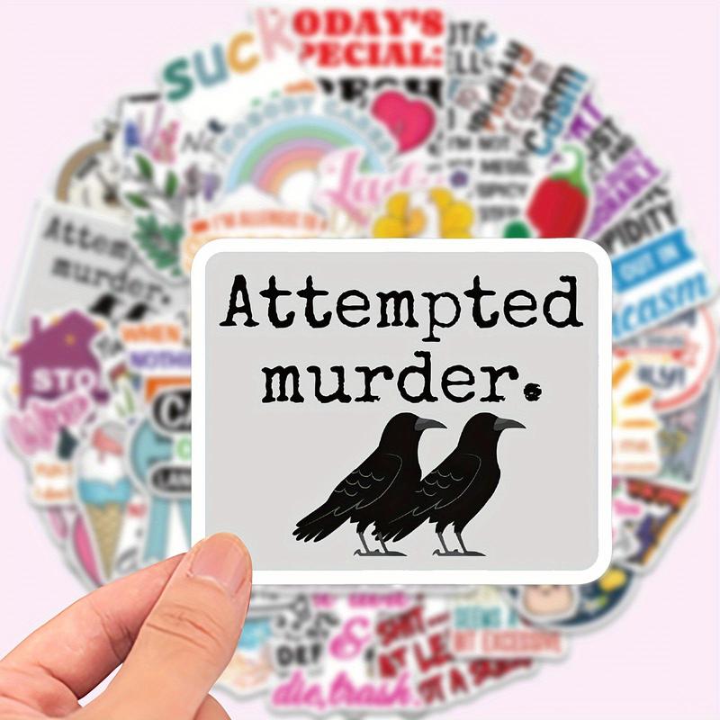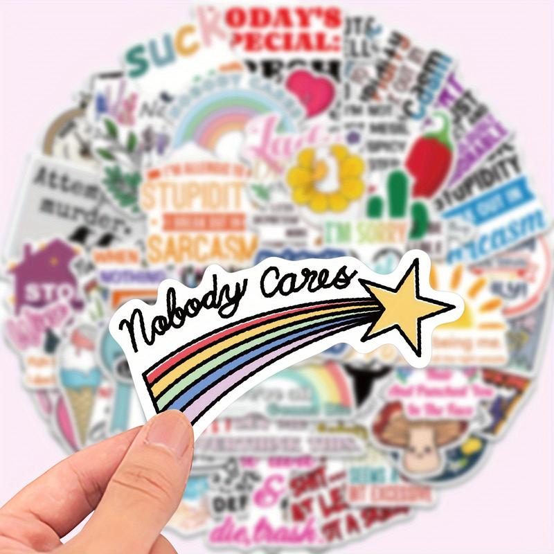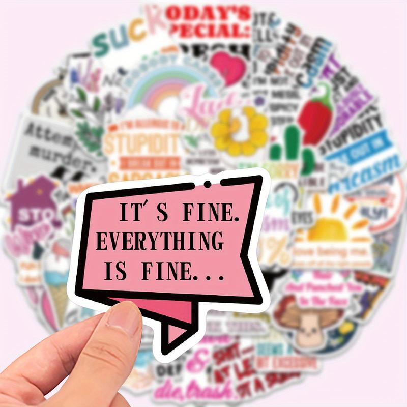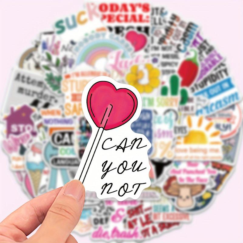 50 Reusable Vinyl Stickers, Funny Quotes Design, Glossy Surface, Durable Adhesive, Perfect for Laptops, Water Bottles, Suitcases, Helmets, Sticker Packs