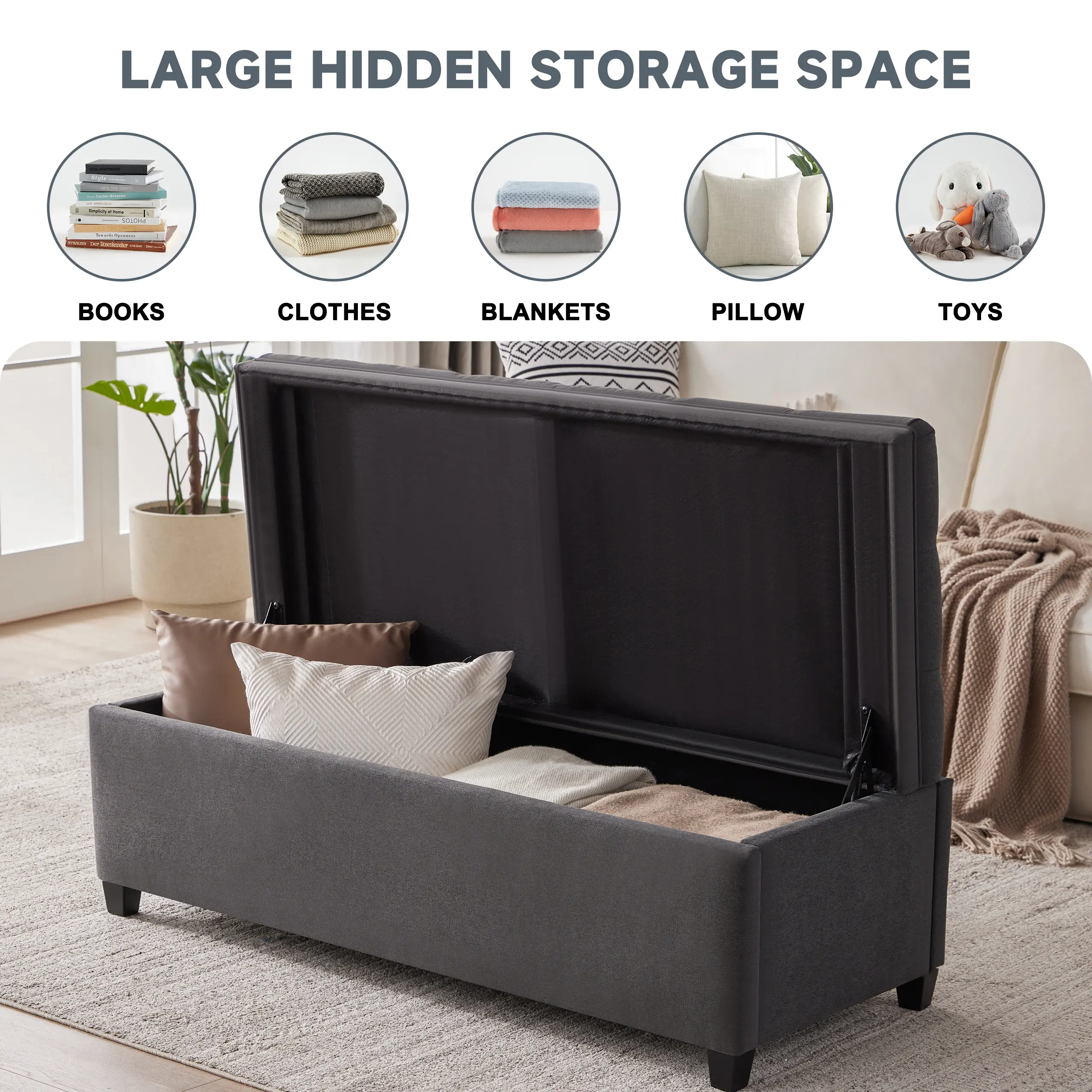 ·Large Hidden Storage: Keep your space tidy with easy and quick access to stored items. The spacious interior of the large storage ottoman bench for bedroom provides ample room to organize blankets, clothes, toys, shoes, helping you eliminate clutter